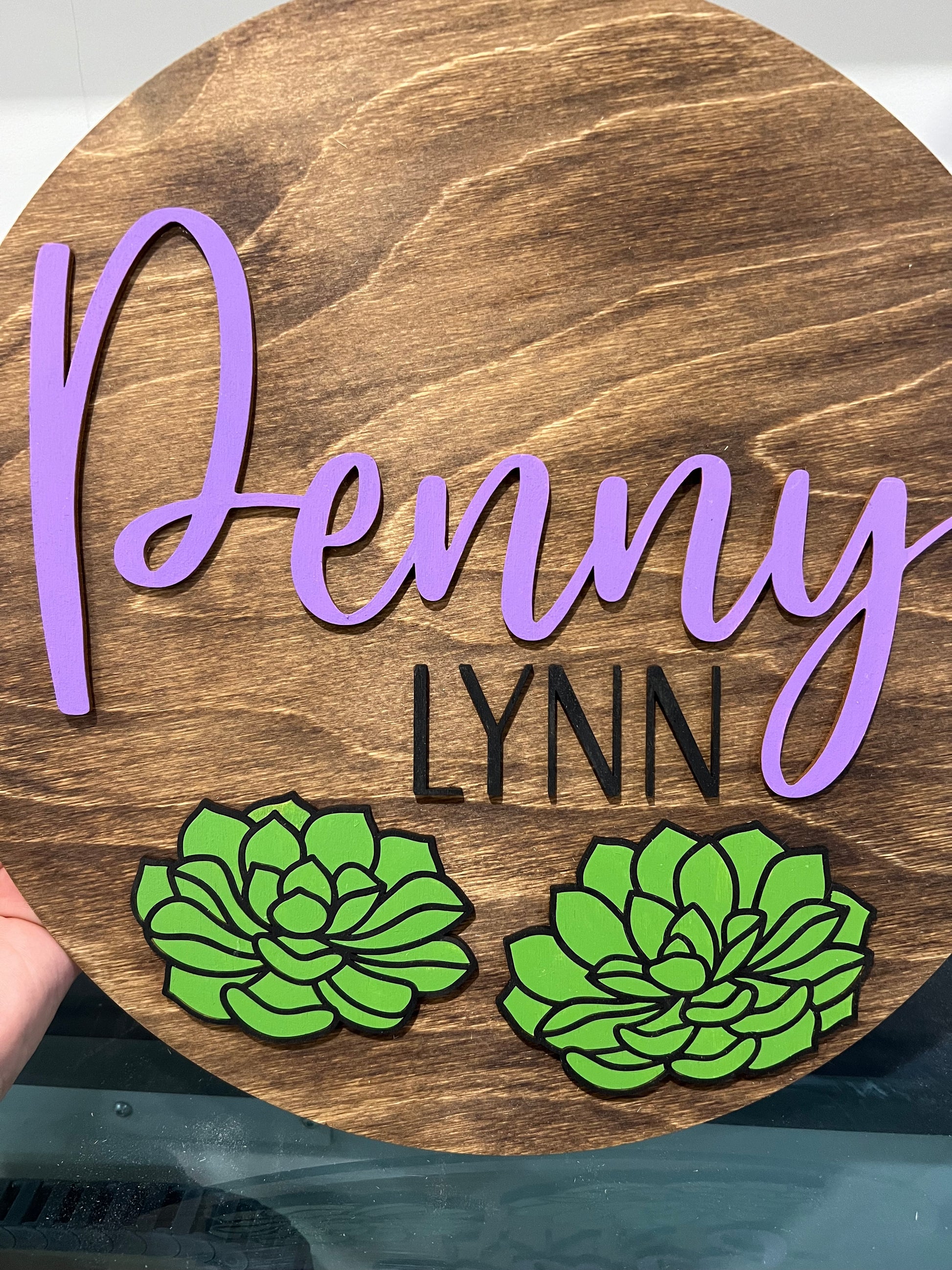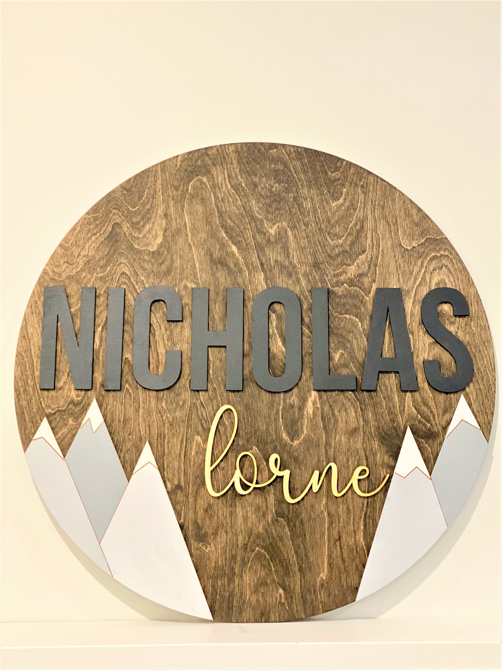 This stunning 19.75" wooden sign is a customizable piece for a child's name or family last name that you would like to add.