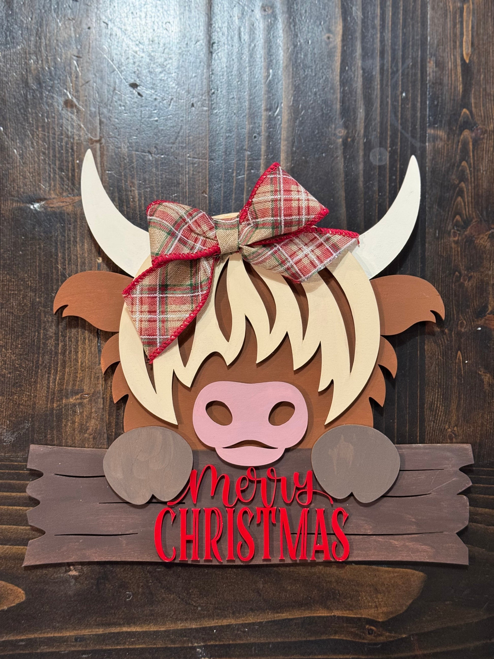 9” round "hello winter" sign of mixed acrylic and wood pieces.